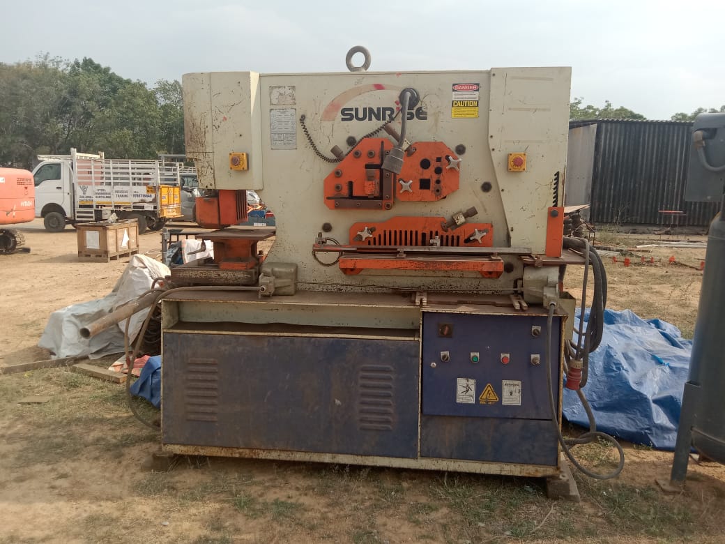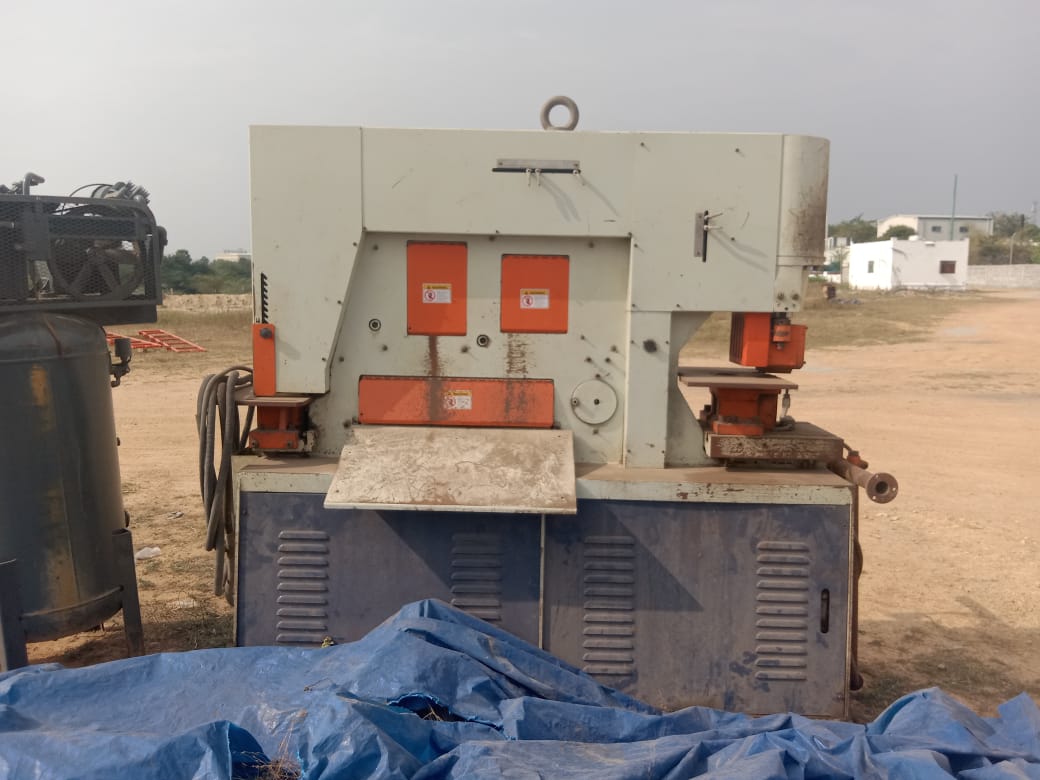 Multi-function hydraulic ironworker designed for punching, shearing, notching, and angle cutting in fabrication workshops.